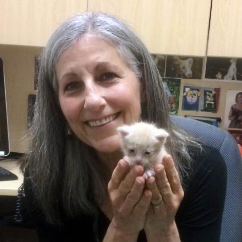 Enid T. is the renowned founder of the Pet Loss Support program at Dove Lewis Animal Hospital- among one of the first in the country- where she helped community members grieve the loss of their beloved companion animals. As a long-term volunteer at Multnomah County Animal Services, behind the scenes, Enid gives the gift of life to countless kittens as a foster volunteer.