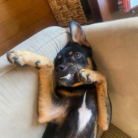 We have reached the one month mark and Baker is an awesome addition to our family. He spends his days walking around town, playing with toys and napping while I work. He loves to cuddle, socialize, put things in his mouth, and carry sticks while we walk. Baker's trainer told me that he "is very good at throwing tantrums." Baker likes to plop down on the sidewalk when he hears noises that are too loud or gets tired of wearing his harness. This is okay because every day he gets more and more comfortable and we learn what works best for us. He has a sweet personality with a touch of sass and is already well known around the neighborhood. I am excited for him to gain confidence and grow!