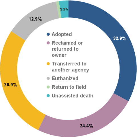 MCAS transferred 26.9% of shelter animals to other shelters and rescues for adoption placement. Thank you to our community partners for your lifesaving work.