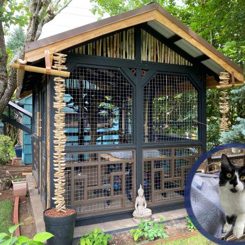The IN-PERSON self-guided Catio Tour showcases 9 catios in the Portland metro area. A guidebook with details about the catios will be emailed to you about a week before the tour. It will have photos, Quick Facts with building materials and cost, and a map so you can choose your route and pick which catios to check out. You can begin and end your day wherever you please...just like your cat! Catio Hosts and volunteers will be available at each catio stop to chat with you about the catio features. Masks will be required to be worn at each location on the Catio Tour, regardless of vaccination status. We will be monitoring the flow of foot traffic and encourage social distancing.