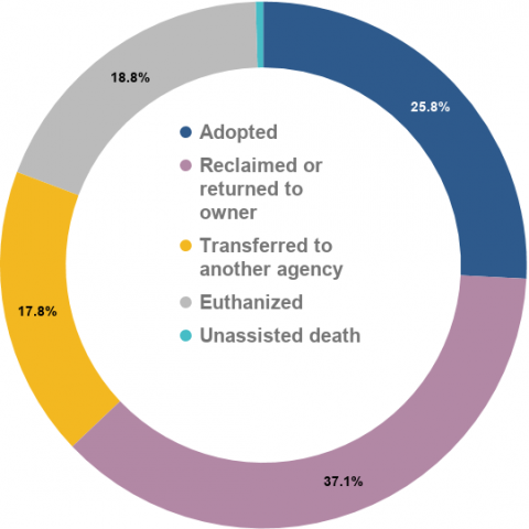Seventy-nine animals (37.1%) were reclaimed by their owners. The majority of animals represented in these outcomes were dogs. In February 2021, fifty-five animals (25.8%) were adopted. At the end of September 2020, MCAS launched a virtual adoptions process allowing for online animal selection, application submissions, and remote adoption interviews. A low-contact process was also developed for animal pickup. Adoptions were also performed from community adoption partners, and foster homes.