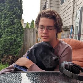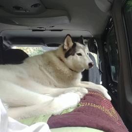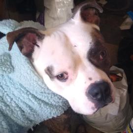 Charlie is our old little man. Most of the time he learns from his little 8 year old brother Cooper. They share the same colors and I have the same camo harnesses for both. Many see these two together and get scared. But they are super sweet and alert us of anyone at the door. It was a long process to adopt Charlie from February 6th to March 15... his official adoption date. I saw Charlie on the Multnomah Animal Shelter Facebook and applied on the 5th and took him home on the 6th as a foster until he was neutered. We hope we can show him how much he is loved for his remaining years to come.