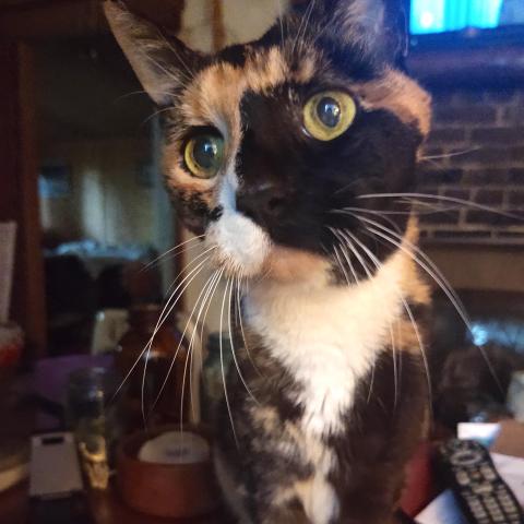 I adopted Kitten (formerly Carmella) from you 2 years ago. She was staying in a foster home. She's about to turn 16 years old. I got her off her meds and switched her food. She's all purrs and headbutts now. The dog wants to be her best friend but she's happy with a peaceful tolerance. She's the perfect combination of sweet and sassy.