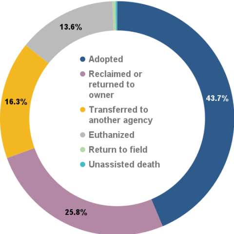 MCAS transferred 16% of shelter animals to other shelters and rescues for adoption placement. Thank you to our community partners for your lifesaving work.