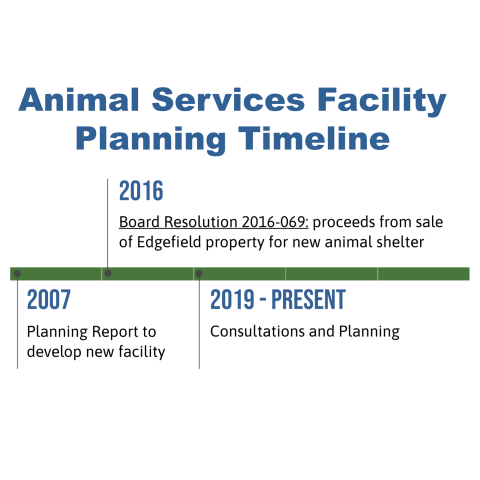 Planning timeline for a new animal services facility from 2007 to present