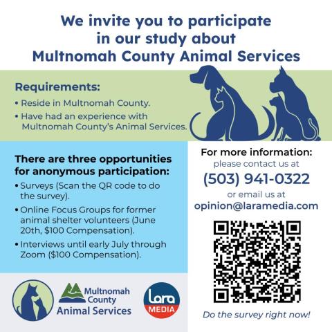 • Reside in Multnomah County and have had an experience interacting with Multnomah County Animal Services
