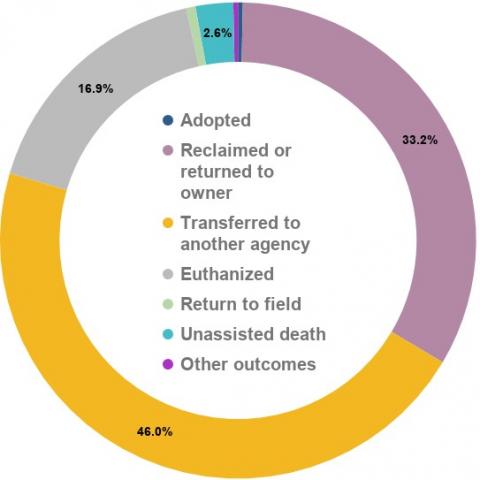 Forty-six percent (46%) of animals were transferred to another agency, including Oregon Humane Society and Cat Adoption Team.